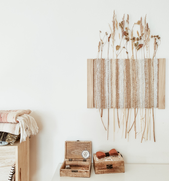 Při výrobě přírodních tapisérií používám sušené květy a trávy z oblasti beskyd a slovenského podhůří. Zároveň spolupracuji s květinovou dílnou, která nabízí rozmanitý výběr.